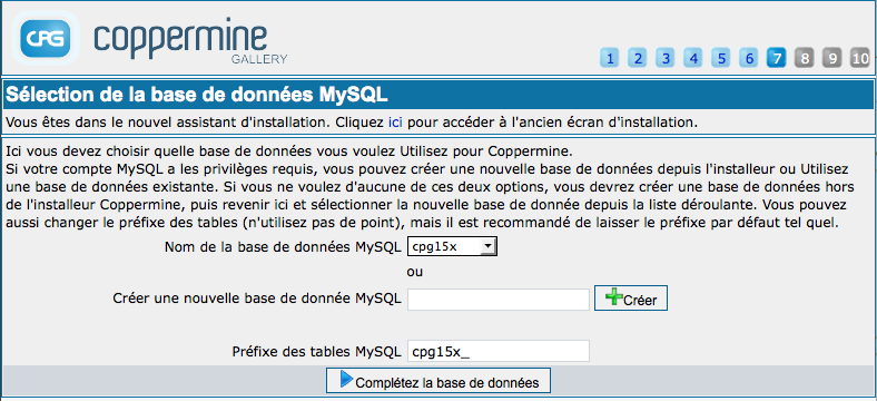 Ici, vous devrez choisir la base de données que vous souhaitez utiliser pour Coppermine.